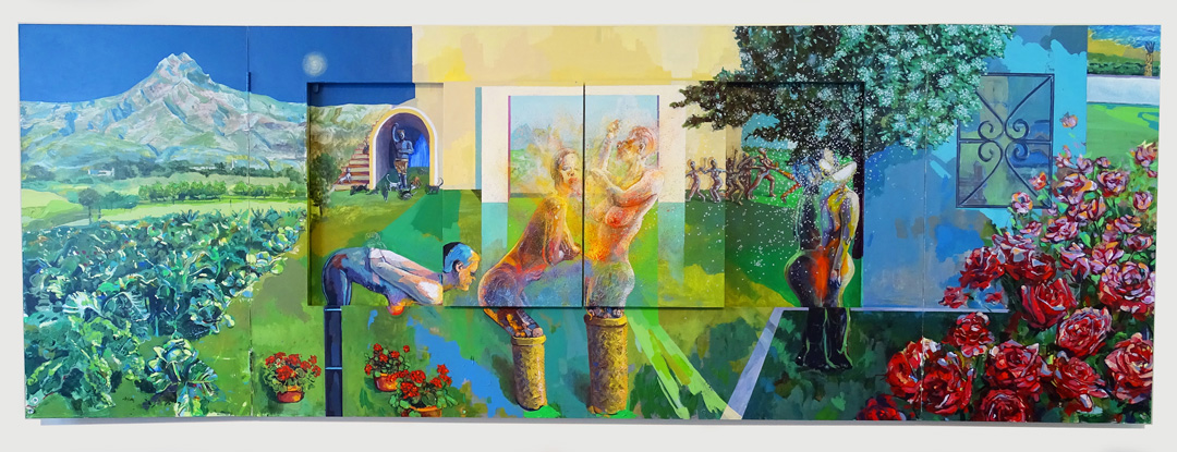 Acrylic on Wooden Multi-Panels 42" x 72" closed / 42" x 120" open 2016 *There are a total of four hinged panels that the viewer can open and close